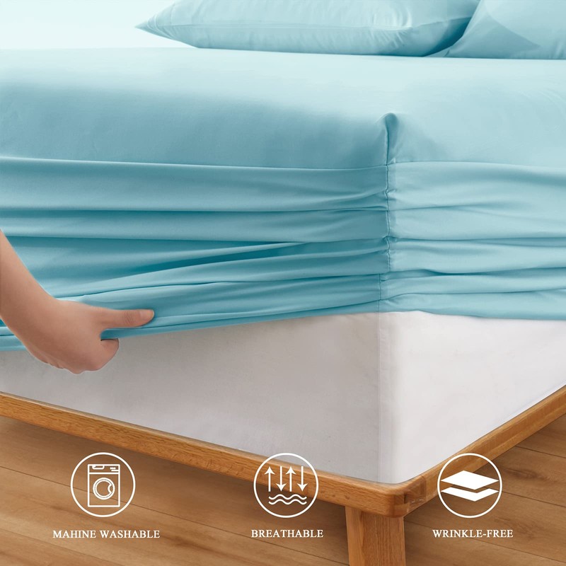 Horbaunal Extra Deep Pocket King Fitted Sheet Only - Fits Up to 24 Inch Mattress - Luxury 1800 Thread Count - Microfiber Aqua Fitted Bed Sheet King Size