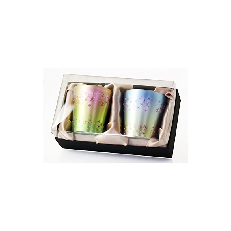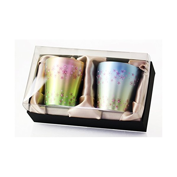 HORIE(ホリエ) 新潟県燕産 純チタン二重タンブラー 華チタン 250cc 桜舞(ピンク/ブルー)2個セット T-15-OB250PB