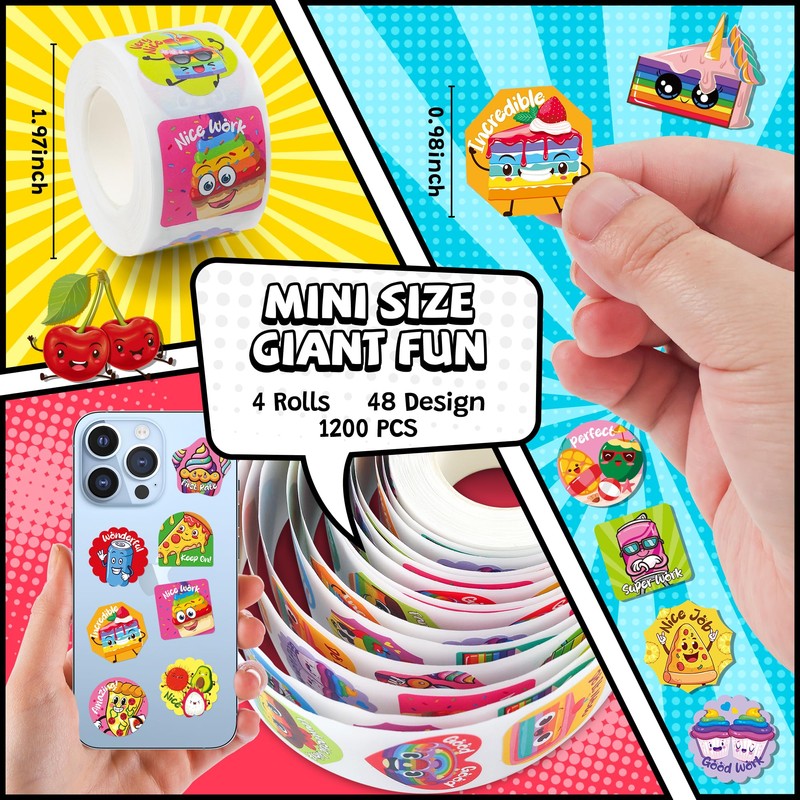 • 1200 Creative Stickers, Endless Fun: 48 food-themed designs (hearts, circles, squares) with positive words like "Nice!" and "Wonderful!"—scratch and sniff stickers perfect for decorating books, laptops & bottles.