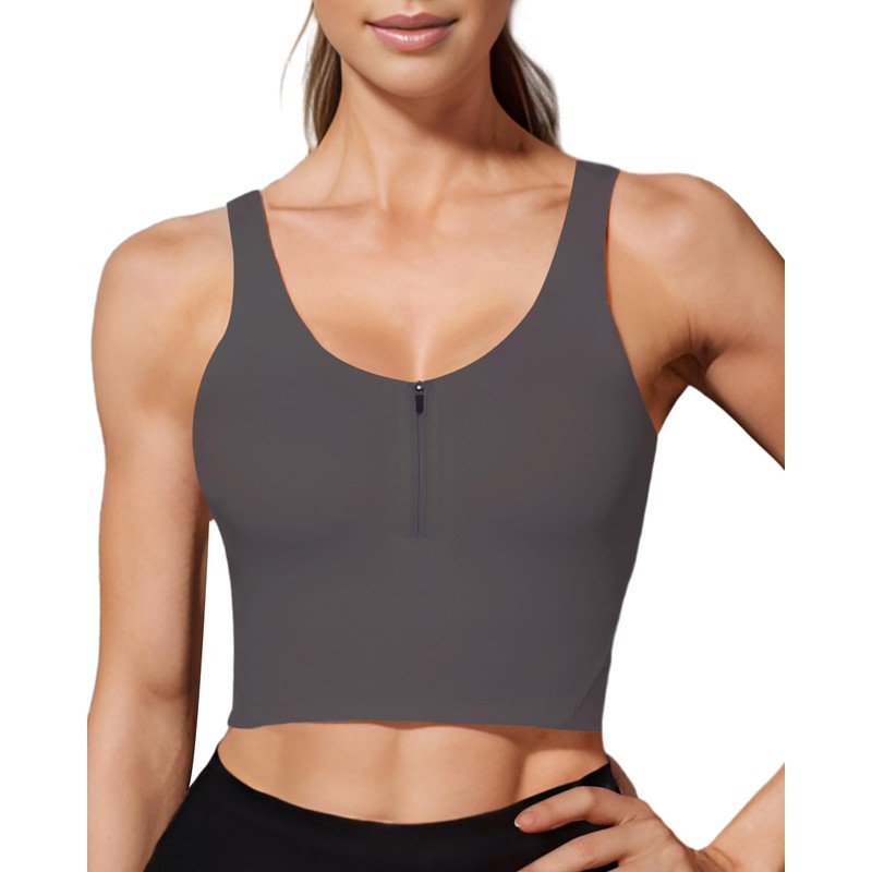 HORISUN Longline Sports Bra Workout Tank Tops with Built in Bra for Women(Charcoal Grey Medium)