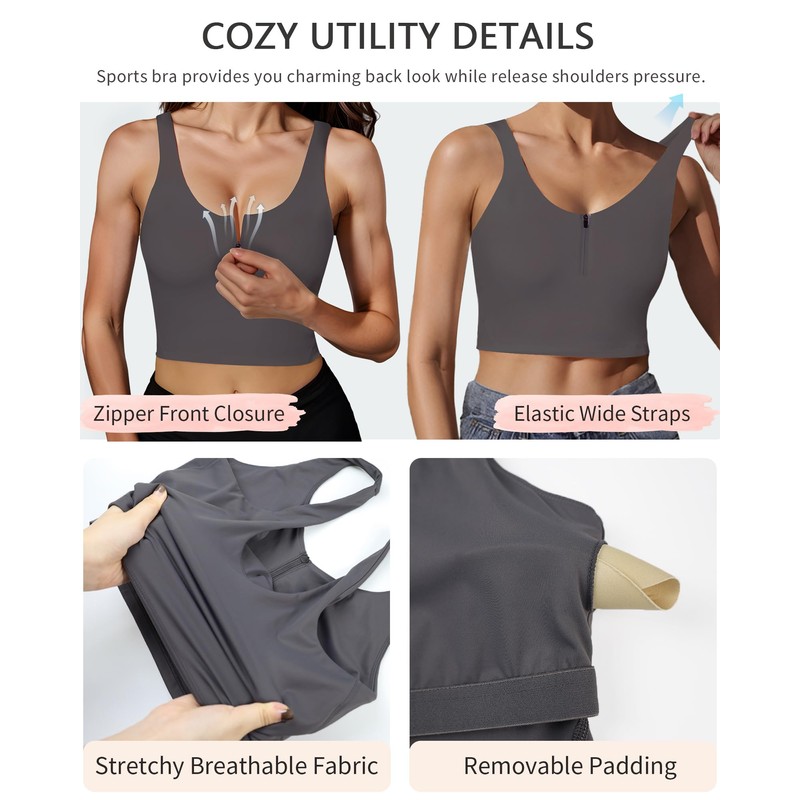 - 【Zipper Front Closure🤩】This women's front closure longlined sports bra has been carefully designed to make it easier to slip on and off. Zipper front closure bra with zipper anti-scratch device easy to wear and take off. A longline yoga bra is a Pullover Designed with a zipper.