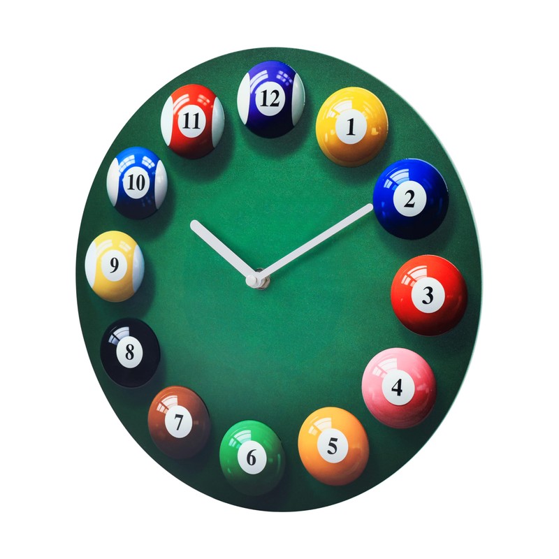 - 【Creative Design】Inspired by billiards,the 12 billiard balls are cleverly matched to the clock's hour markers. The green dial simulates a billiard table, featuring vibrant colors and high fidelity. It is an excellent choice for billiards enthusiasts and those seeking unique home decor.