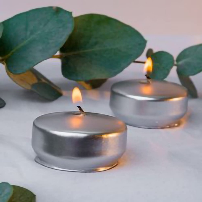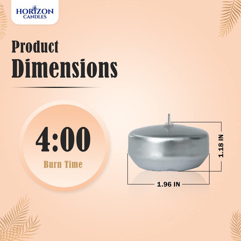 Horizon - Unscented 24 Piece Floating Candles for Parties | 2" Dripless and Smokeless Floating Candles with 5 Hours Burning Time for Centerpieces at Wedding, Pool, Home Decor | Silver