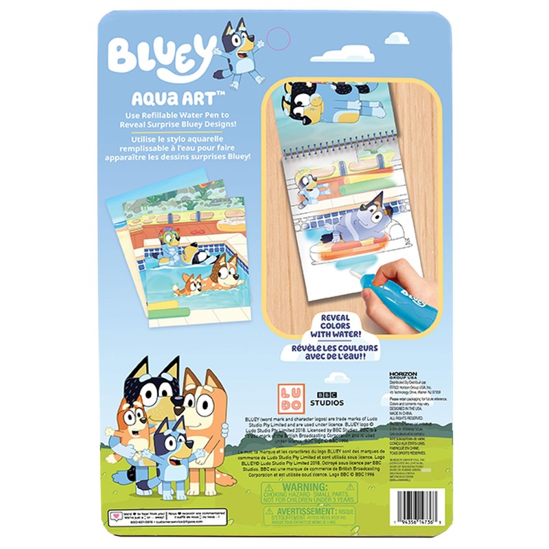 Horizon Group USA Bluey Aqua Art, Includes 4 Reusable Pages of Water Art & Water Pen, Color with Water Book, Water Reveal Activity Book, Paint with Water Books, Doodle Book, Reusable No-Mess Art Book