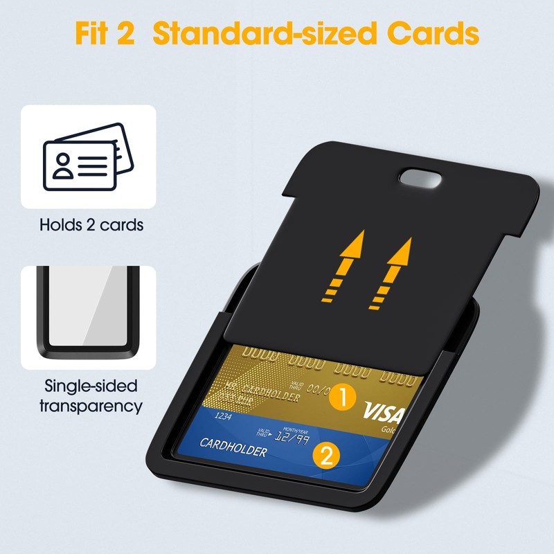 - [ Insert 2 Cards ] Horizontal badge holder outer size: 3.9 in x 3.1 in, inner size: 3.3 in x 2.1 in, usually suitable for two standard size cards, such as credit cards, ID cards, access cards, passes, driver's licenses, etc.