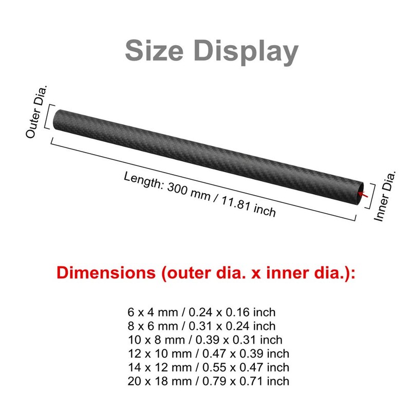 Horlirty 3K Carbon Fiber Tube Glossy Wrapped Inner Diameter = 4~18mm Length 300mm Wall 1mm for RC Air Model (C-10x8mm)