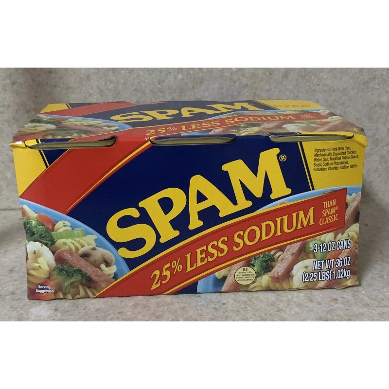 3 Hormel Spam 25% Less Reduced Sodium Ham 12 Oz Each Can Total 3.