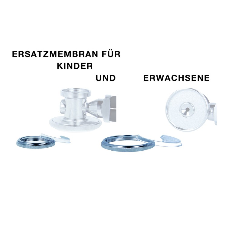 - Accessories: 3 funnel attachments (Adult, Medium, child), 2 spare ear, olive, 1 replacement membrane for adults and children, 1 special keys for removal of membrane rings