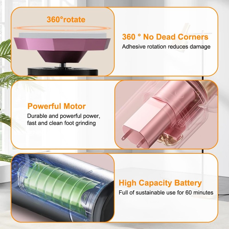 - Hochwertiges Legierungsmaterial:Der elektrische Hornhautentferner besteht aus einer hochwertigen Legierung, während die Lager im Inneren eine hohe Präzision und Konzentrizität aufweisen. Diese Eigenschaften tragen zur Stabilität während des Gebrauchs bei und vermitteln ein angenehmes Gefühl beim Halten. Die fortschrittliche Motortechnologie reduziert die Geräuschentwicklung bei gleichbleibender Leistung.