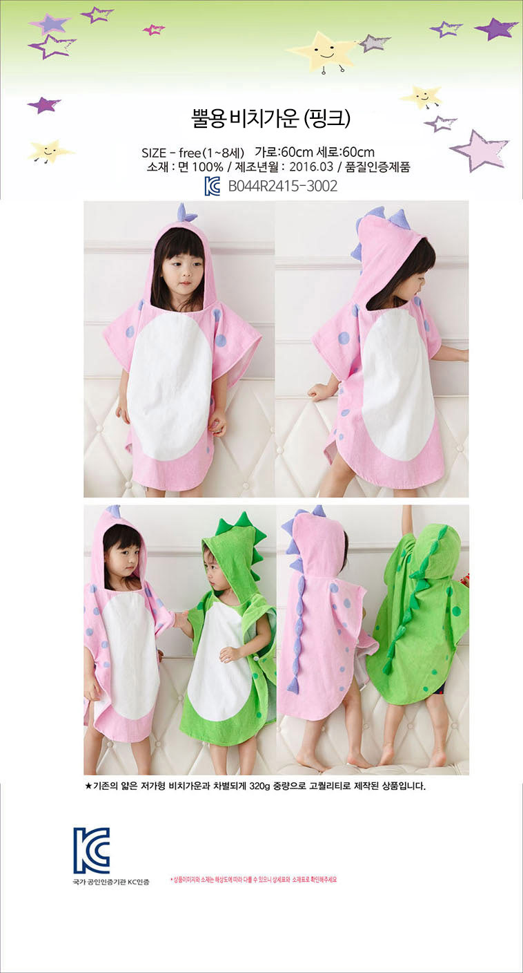 Horny infant beach robe beach towel bathrobe baby gown pink 3ea