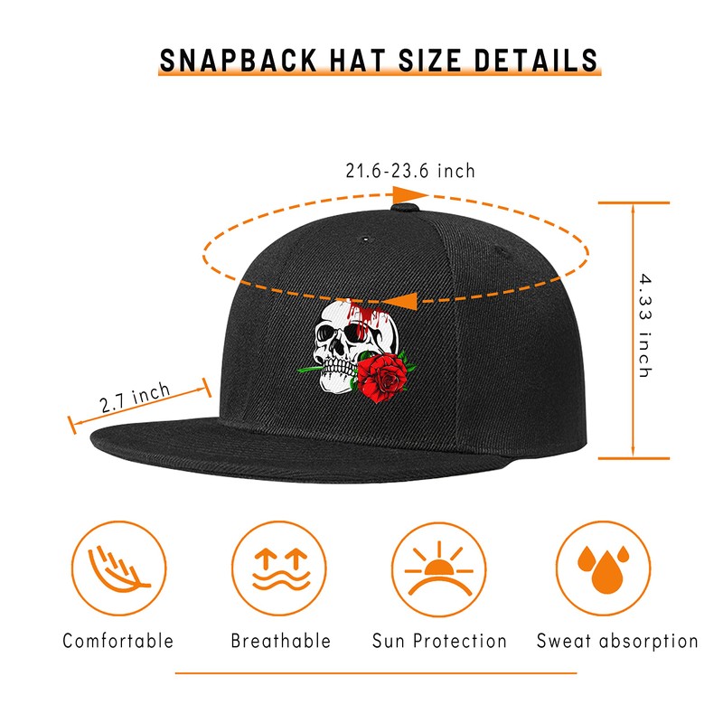 Horror Skull Rose Hat Cool Reaper Grim Snapback Hats for Men Flat Bill Brim Snap Backpack Trucker Hats Adjustable Men's Horror Devil Baseball Cap Original Caps Snap Back