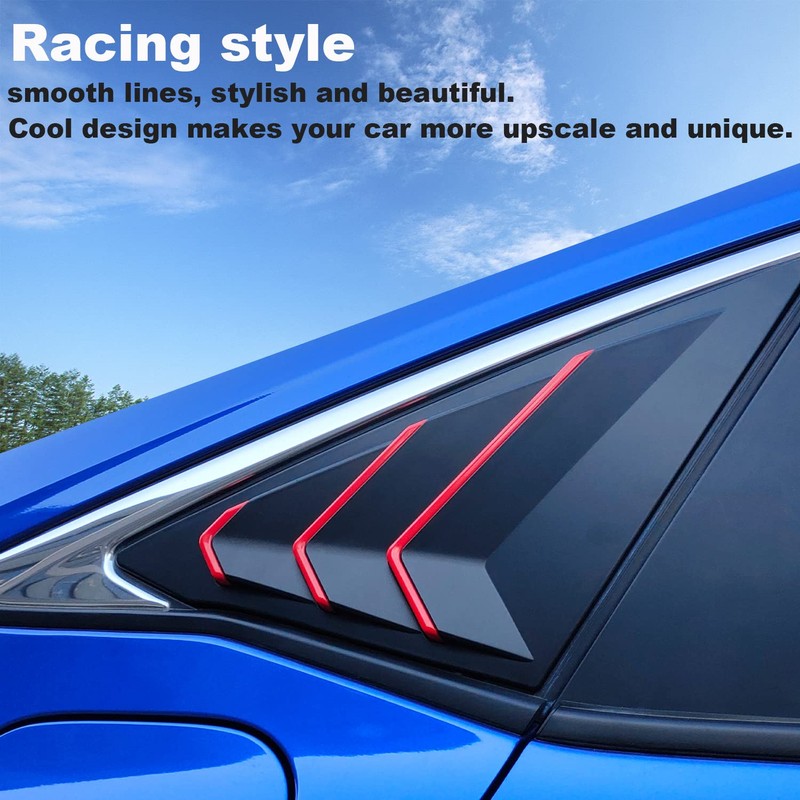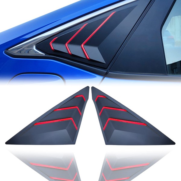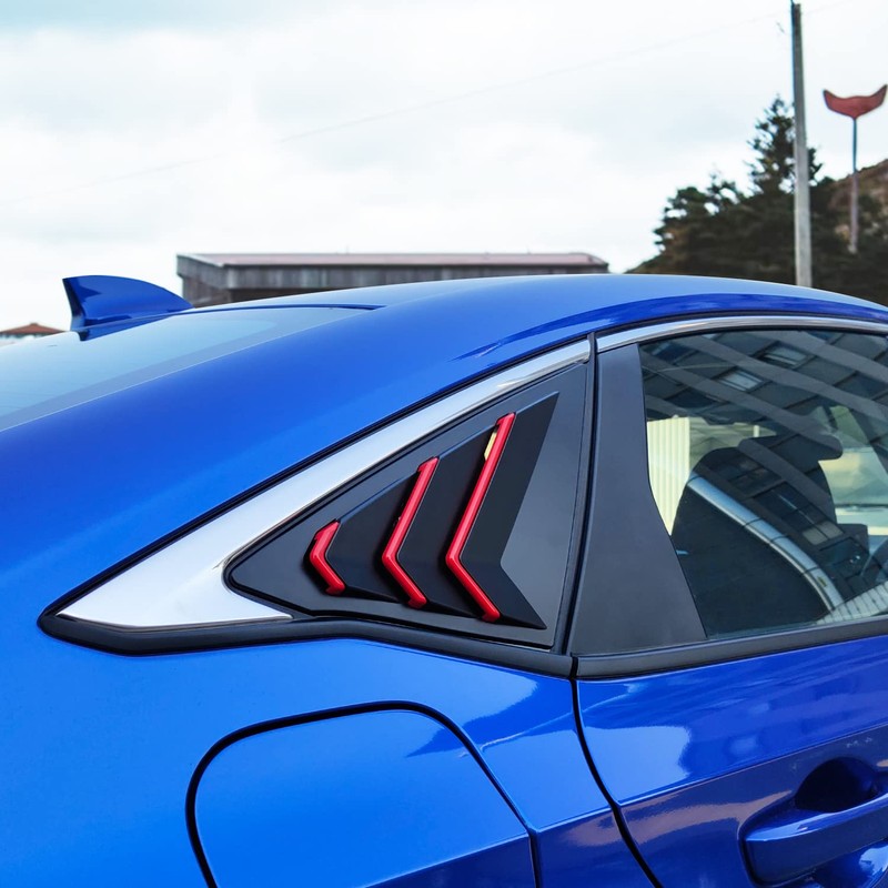 Horry ABS Rear Side Window Louvers Air Vent Scoop Shades Cover Blinds Trim for Honda Civic Sedan 2022(Red+Matt Black)