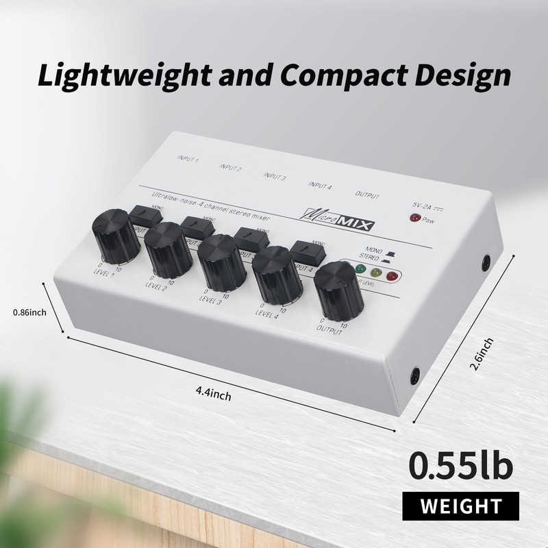- 【4-Channel Audio Mixer】The audio mixer collects sound from many different sources into one listening location for monitoring or routing. Each channel on the online mixer has an independent volume control, each channel is equipped with a separate input plug and volume control.