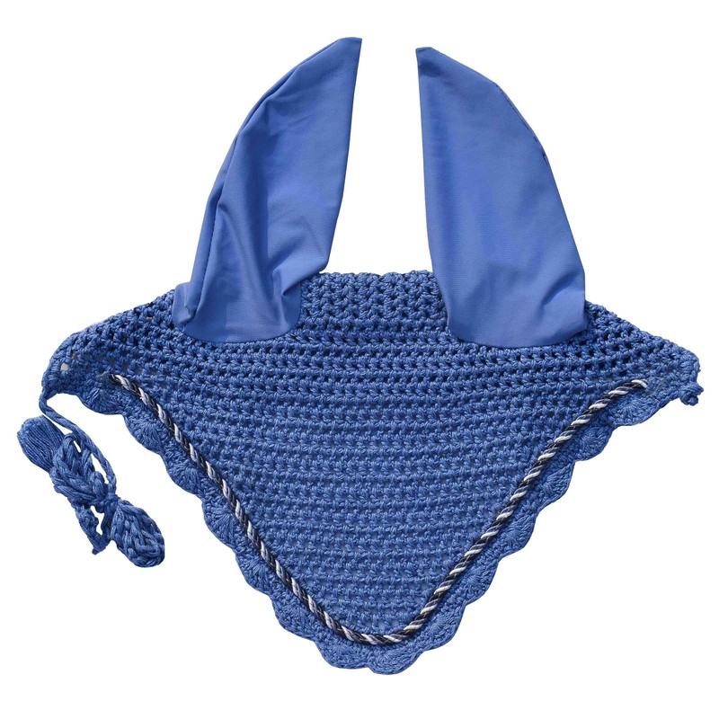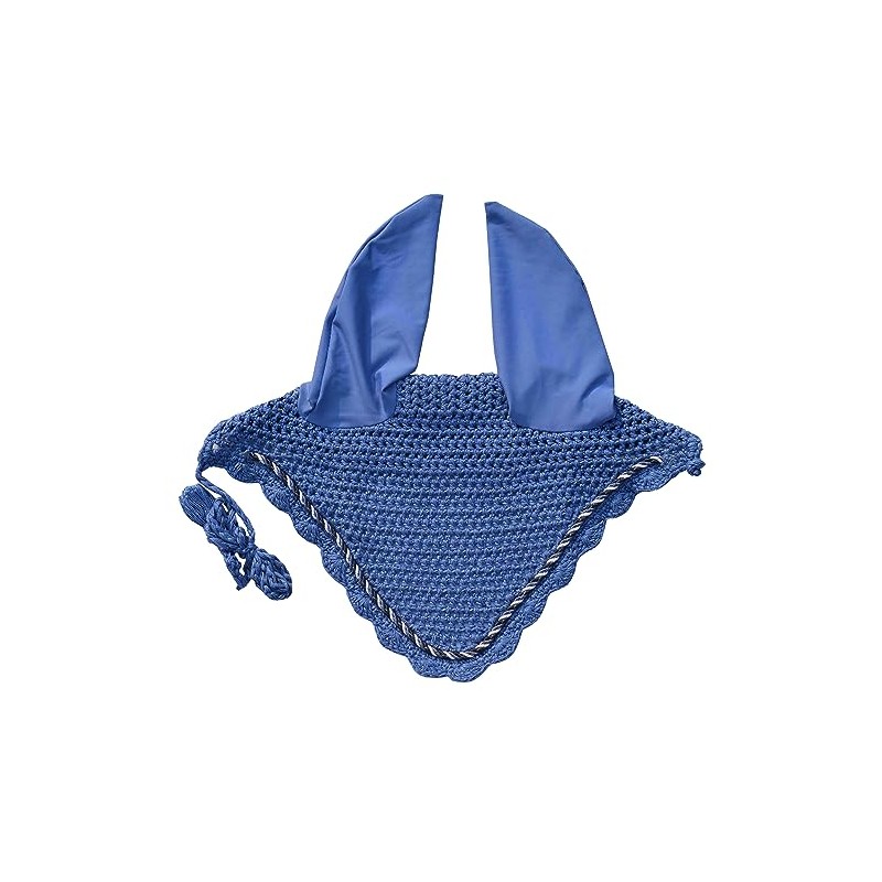 Horse Ear Bonnet Ear Net Hat Fly Bonnet Hood Mask Fly Veil Full Hand Made Cotton (Pony, Dark Sky Blue)