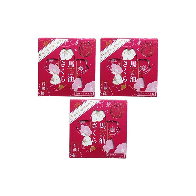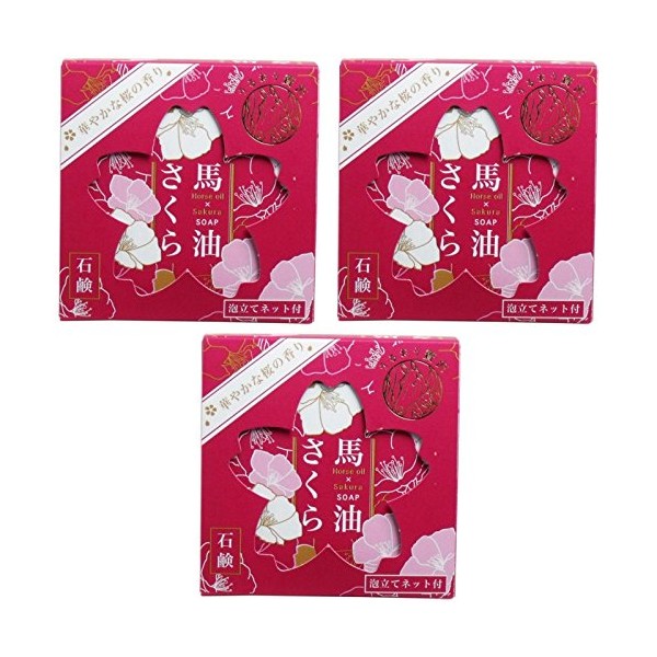 Horse Oil Sakura Soap (With Frothing Net) 3.5 oz (100 g) (3 Pack)