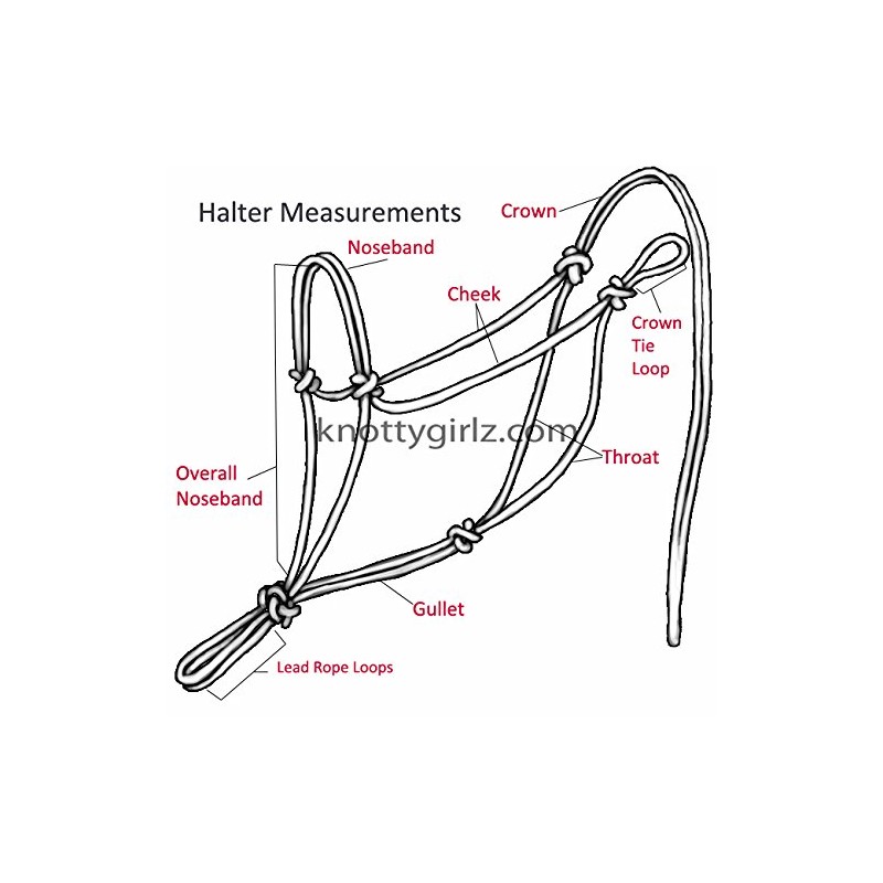 - ''' Knot on pressure points for training horses. No hardware to break. This polyester halter rope holds up well in adverse weather conditions with great abrasion resistant properties.#||# Stiff rope makes it easy for halter to hold its form and more reactive to horses.#||# Used by many famous trainers throughout the world. Strong rope with little stretch.#||# Halter with additional knots on the nose for added pressure. Manufactured by the Knotty Girlz, manufacture to the trainers.'''