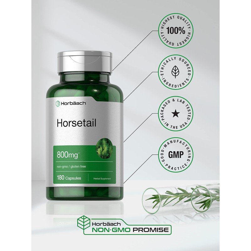 Horsetail Capsules 800mg | 180 Count | Non-GMO, Gluten Free Herb Supplement | by Horbaach by Horbäach Store