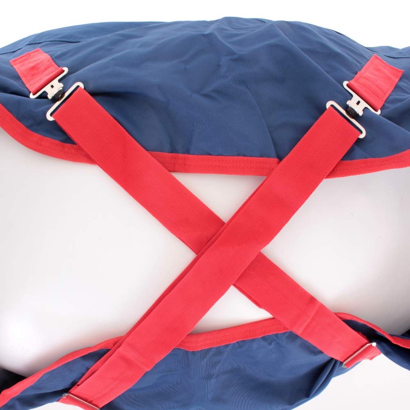 Horseware Ireland600D polyester waterproof outer, breathable to point of dripstripPolyester lining with fiberfill in rugSizes 66", 69", 72", 75", 78", 81" and 84"Available in Dark Blue/Red or Black/Turquoise200g fill AASA42 An affordable turnout. 600D polyester waterproof outer, breathable to point of dripstrip. Polyester lining with fibrefill in rug. Classic cut design with double front closures, front leg arches, cross surcingles and shine enhancing polyester lining.