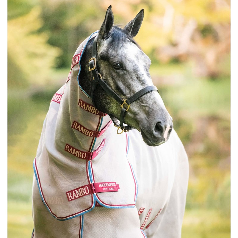 The Rambo Protector Fly Sheet w/ Disc Front Closure (0g Light) is our most durable fly and UV protective performance mesh fly sheet. Incorporating our lightweight disc-front closure to the front for an ultra-lightweight and secure fit, this fly sheet gives outstanding protection against UV rays and fly and insect disturbance so that your horse can enjoy field time in peace, and you can enjoy your day without worrying about your horse. The detachable extended close contact hood shape delivers an improved fit, and comprehensive chest coverage. Comfort is further extended with our dual leg arched design and disc front closure system, which help alleviate pressure points and allow for greater freedom of movement. A super-sized tail flap embraces an anti-rub silky lining, also found on the neck and shoulder which keeps your horse’s tail in excellent show condition. This fly sheet features a tail cord for added security. The generous belly coverage adopts Velcro closures, further reinforced by three straight surcingles for a snug fit. Compatible with our Waterproof Fly Rug Liner to offer a breathable and waterproof combination to keep your horse protected from horseflies and other annoying insects, and comfortable whatever the summer weather decides to do!