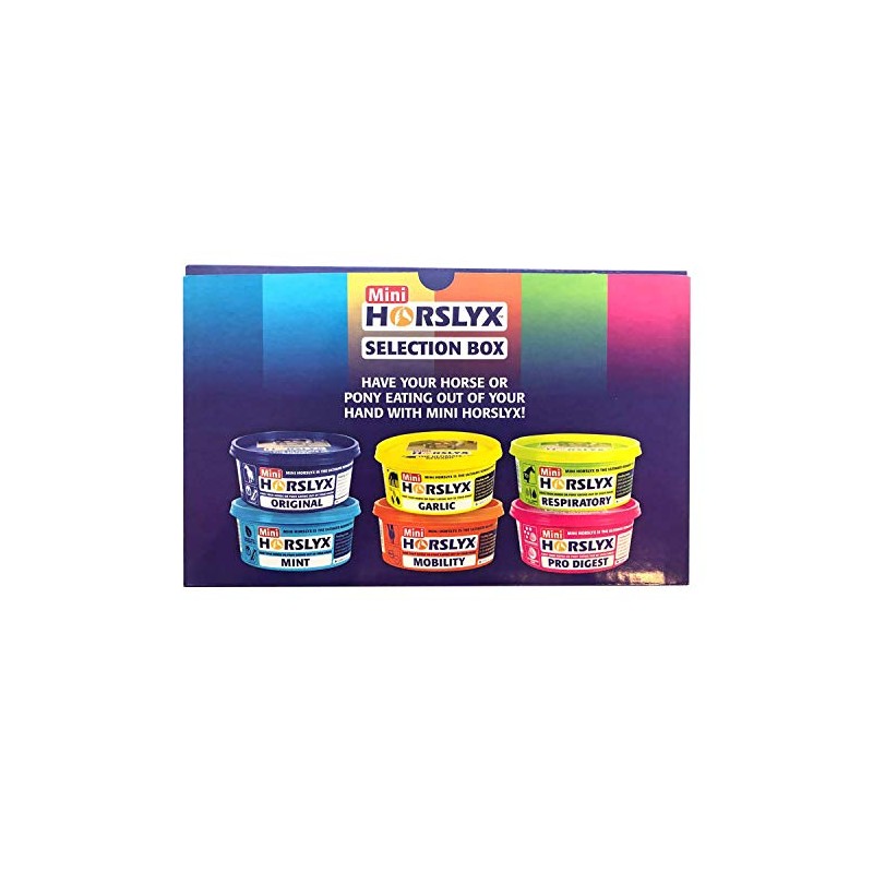 - Gift box containing all six of the 650gm mini licks: one each of original mint, garlic, mobility, respirator and pro digest.
