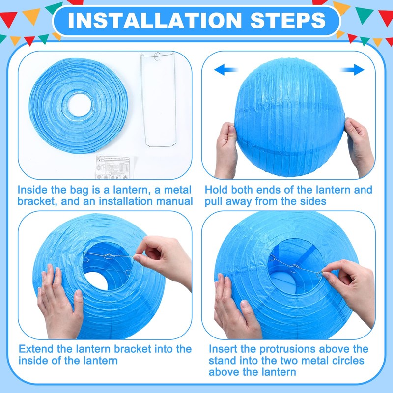 - Easy Installation: it only takes a few minutes to assemble these picnic party supplies; Remove the packaging of paper fan flowers and open them, glue the 2 sides, then fix the paper clips on the paper fans, and the equipped hanging threads allow you to hang them on the places you like; As for the round lanterns, you can easily install them according to the instructions in the packaging bag, saving time and effort