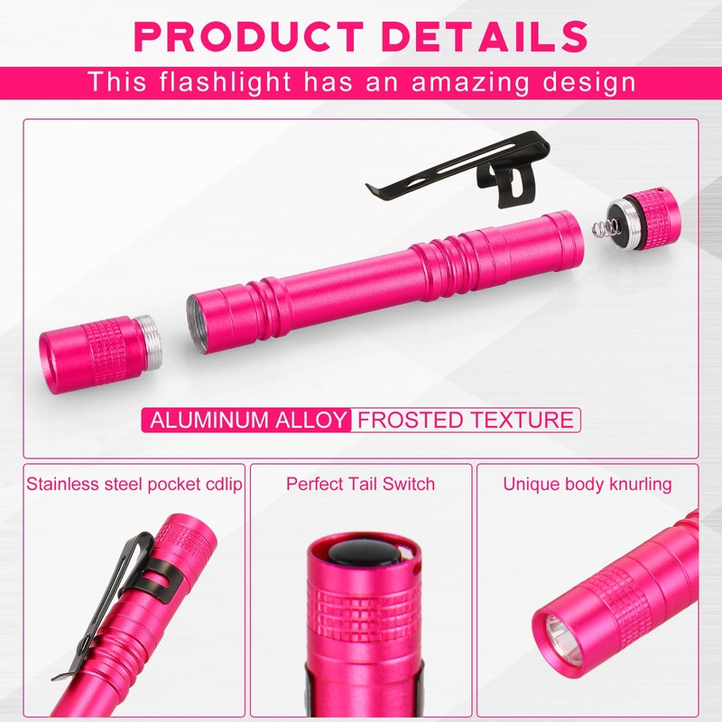 Hortsun 20 Pcs Mini Pen Light Flashlights Pocket Flashlights Pen with Clip Small LED Handheld Slim Torches for Christmas Gift Without Battery (Rose Pink,5.12 Inch)