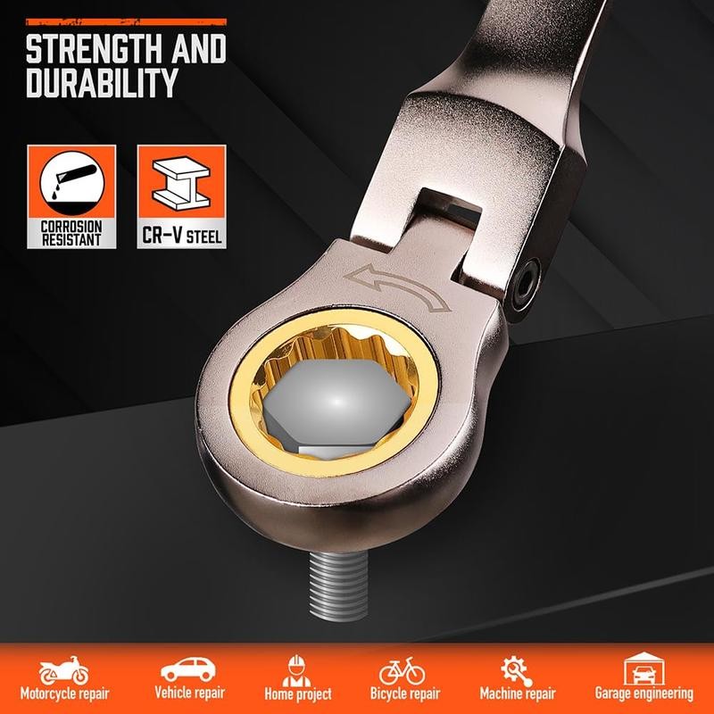 Flex-Head Wrench is Made of High-Strength Chrome-Vanadium Steel Construction to Ensure Durability and nickel plated for durability, these wrenches will deliver years of consistent performance.