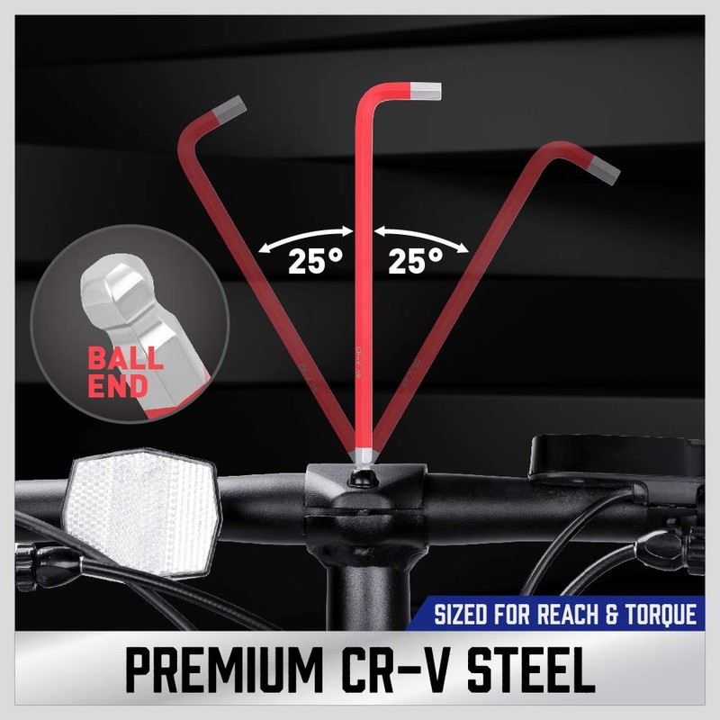 - Each allen key with heat treated & chrome plated also has a different highly visible color to make for easy distinction of different sizes. A textured slip resistant surface for an easy grip even with oily & dirty hands.
