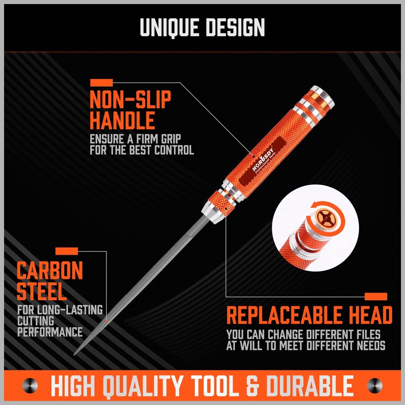 • Easy to change: Remove the knob on the top of the handle, insert the metal file into the handle, and install the knob to use.