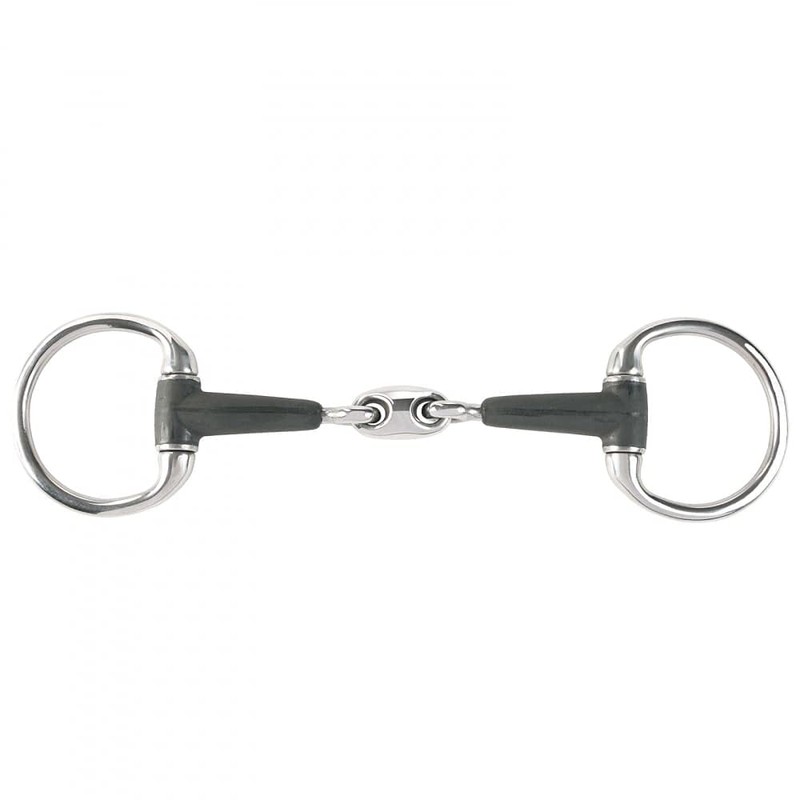Olive head bits are very versatile. This rubber-coated option protects the jaw angles and a double broken mouthpiece provides more contact. Rubber bites benefit sensitive horses as the mouthpiece is flexible and the rubber stimulates chewing and salivation.