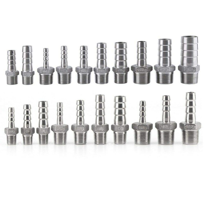 Hose Barb Hose Barb Stainless Steel SS304 Male Thread Coupling Fitting Connector BSP for Many Different Pipes 1/8-1/2 (1/4 x 8mm)