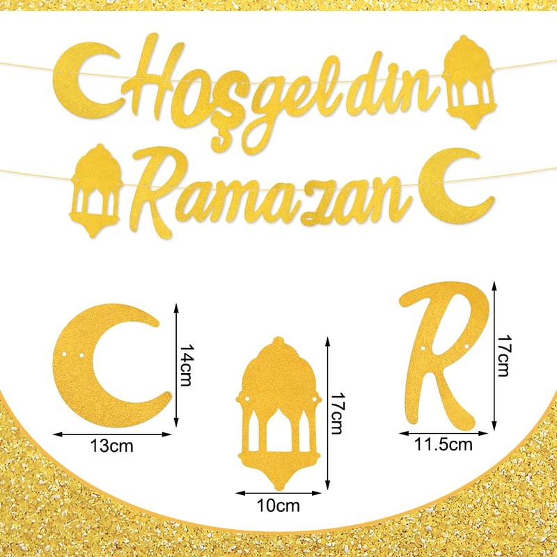 - Ramadan banner: you will receive 1 x 3 metre golden Ramadan decorative banner in Turkish, which gives the month of Ramadan a festive touch