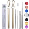 Hoshen Reusable Three-Section Foldable Metal Straw, Portable Telescopic Straw, Including Brush and Small Carabiner (Aluminum Alloy Shell), Silver, 2 PCS
