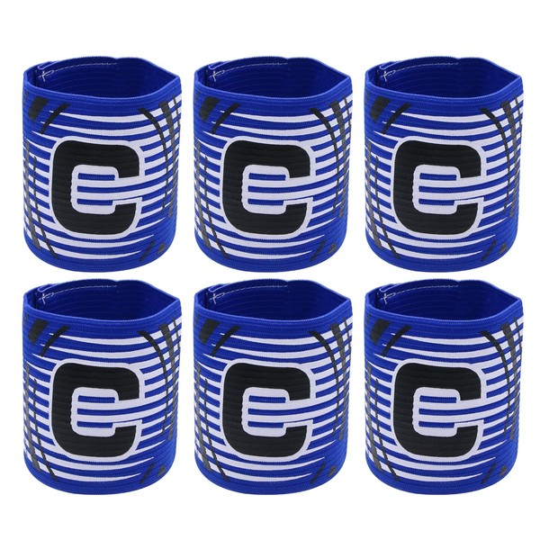 Hosifiy 6pcs Football Captain Armband, Blue Elastic Football Captain Armband Adjustable Outdoor Football Player Captain ArmBands Sports Captain C Arm Band for Youth and Adult