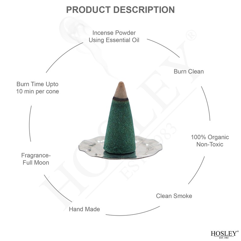 Hosley 240-Pack Full Moon Incense Cones, Essential Oil Infused, Ideal for Meditation, Aromatherapy, Spa, Home, Bath, Weddings, Gifts