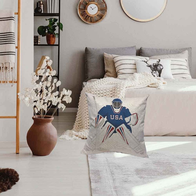 • LINEN MATERIAL - This HOSNYE Team Usa Hockey Goalie Pillow Cover Using bright and soft PILLOW COVER SIZE - 18 x 18 inch, perfect fit for your 18 x 18 pillow inserts en material, thick and comfortable