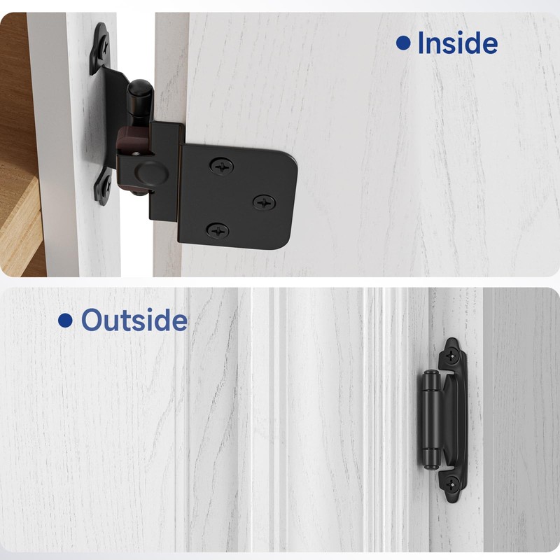 - 【Self Closing】: The flat kitchen cabinet door hinges equipped with spring offset, these 3/8 overlay inset black hinges for cabinets automatically close cabinet doors under 30 degrees, providing secure and reliable closure.