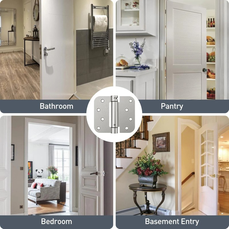 • ?Standard Fit?These 4'' standard auto close door hinges are usually applied to your house-to-garage door, front door, back door, etc.
