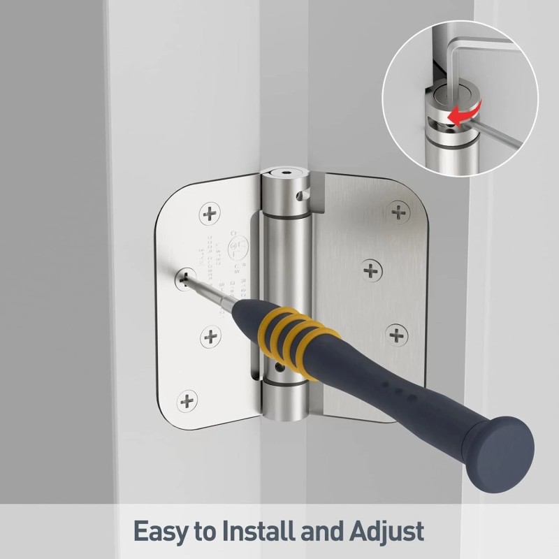 • ?Easy to Install & Adjust?Without taking the door off, just remove the old self closing hinges and replace brushed nickel door hinges at a time only using a screwdriver. The accompanying hex wrench lets you freely set the tension.
