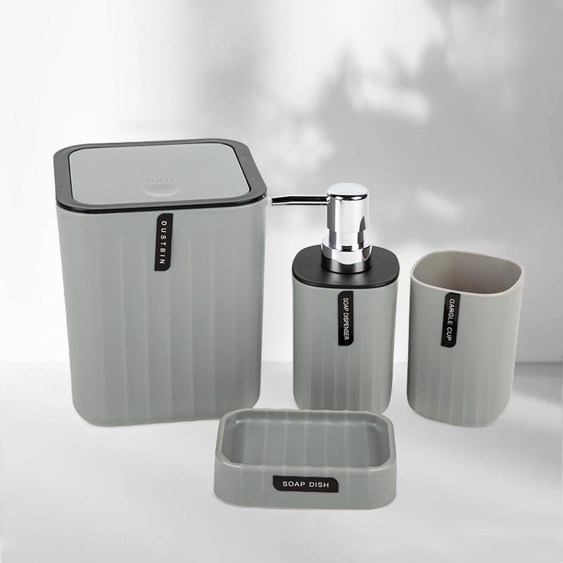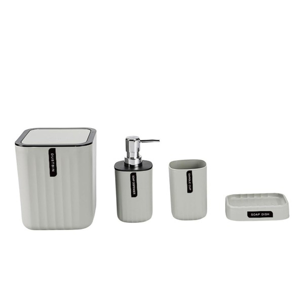 Hosoncovy 4 Pieces Bathroom Accessory Set Bathroom Container Set with Soap Dispenser, Bathroom Cup, Soap Dish ,Desktop Trash Can (Grey)