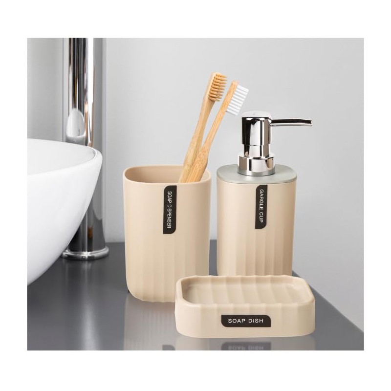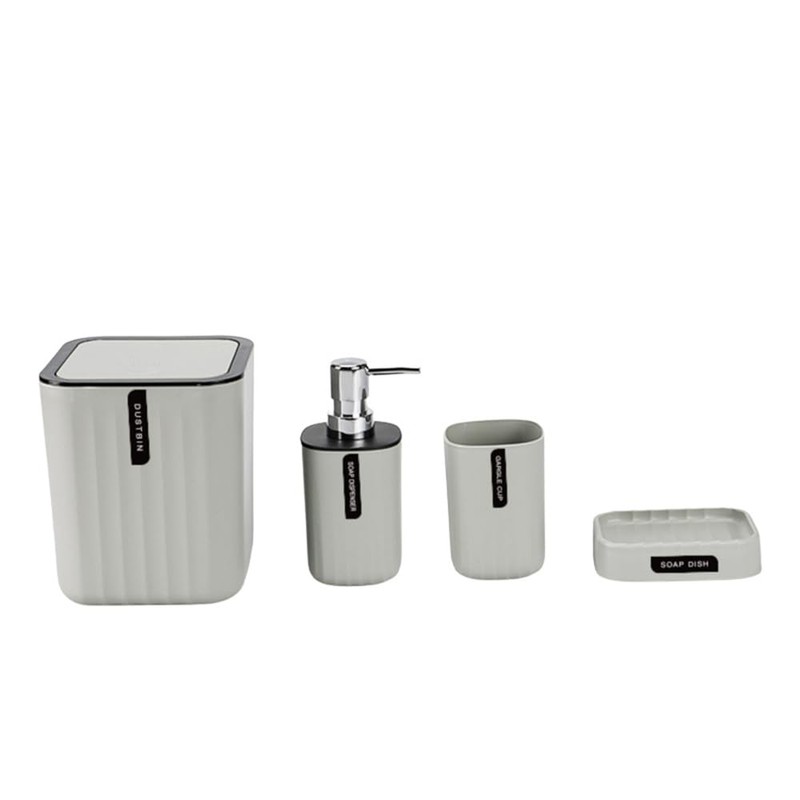 - 4 pcs set package include: soap dishe * 1pc, cup * 1pc, press type lotion bottle * 1pc , desktop trash can * 1pc .