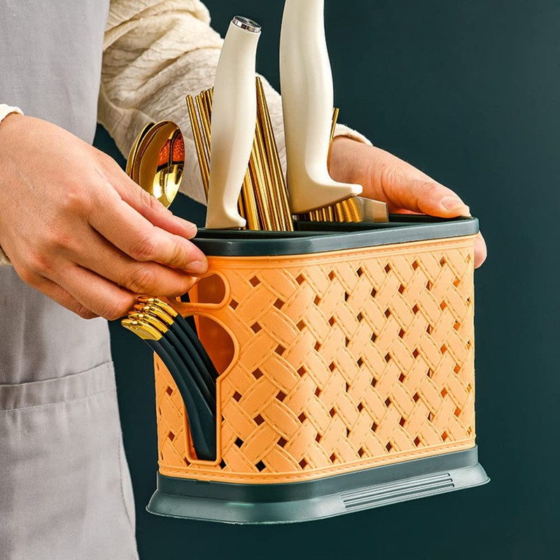 Hosoncovy Countertop Cutlery Drying Holder Utensil Holder Cutlery Drainer Tableware Holder Box Tabletop Separated Fork Chopstick Kitchen Storage Cutlery Utensil Organizer (Yellow)