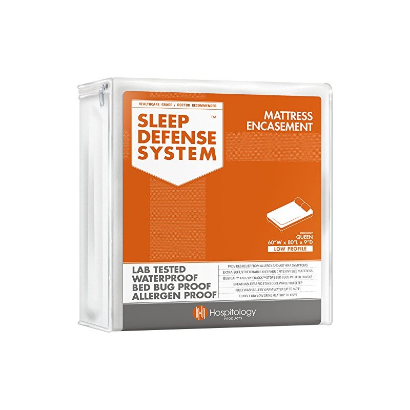 HOSPITOLOGY PRODUCTS Sleep Defense System - Zippered Mattress Encasement - Queen - Hypoallergenic - Waterproof - Bed Bug & Dust Mite Proof - Stretchable - Low Profile 9" Depth - 60" W x 80" L