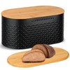 Hossejoy Metal Bread Box with Reversible Bamboo Cutting Lid, Bread Storage Container for Kitchen Countertop, Modern Bread Bin Holder Breadbox (Black)