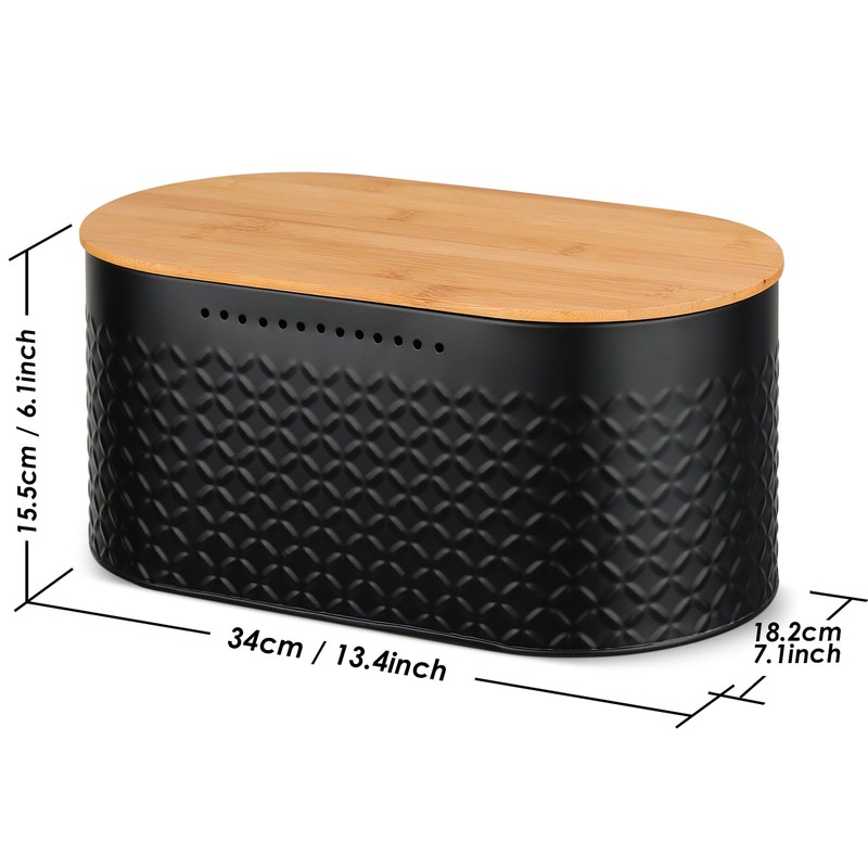 - Stylish Design: Metal bread containerwith bamboo lid is a classic design with crossed pattern to suit your vintage kitchen decor, blends well with minimalist, contemporary, rustic or any other interior design.