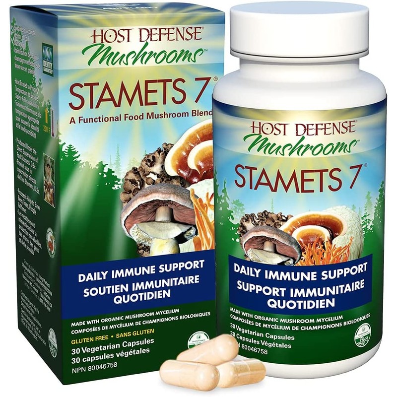 Host Defense Stamets 7 uses activated, freeze-dried, certified organic mycelium, with a full spectrum of constituents: polysaccharides (beta glucans, arabinoxylane, glucose, xylose, galactose and cordyceptic acid), glycoproteins, ergosterols, triterpenoids and other myco-nutrients, which are essential for supporting natural immunity.