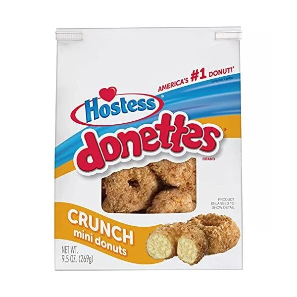 Hostess Donettes Mini Donuts, Crunch, 9.5 Ounce (Pack of 6)