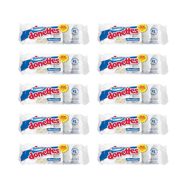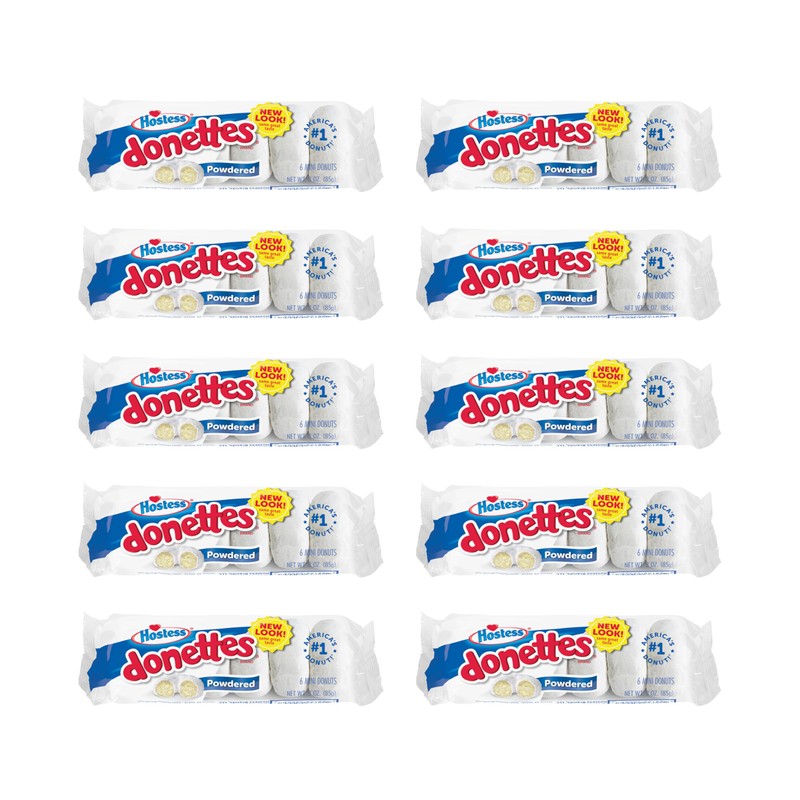 Hostess Powdered Sugar Donettes, 6 Count Bags (10 Pack)