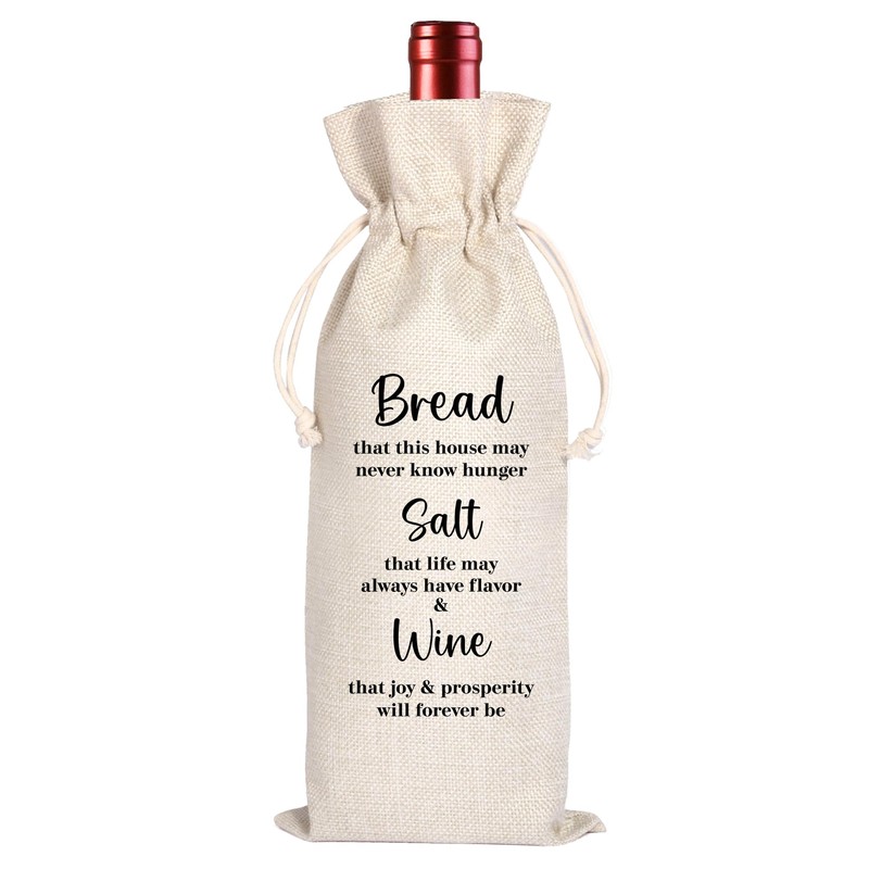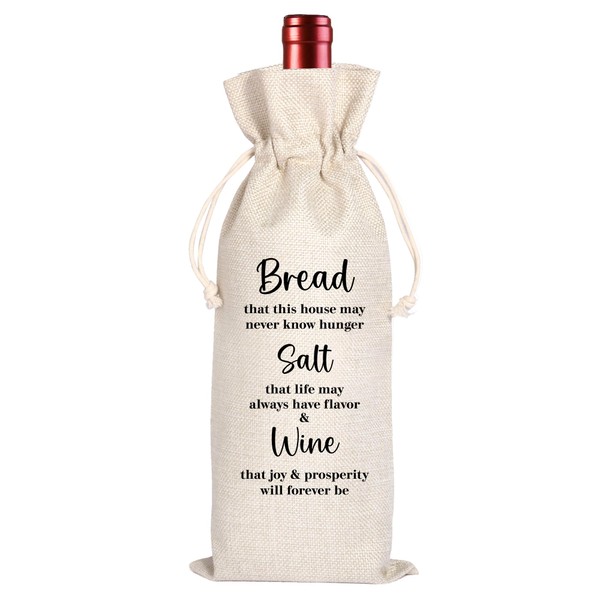 Maydvdv Hostess Gifts Wine Bag, Housewarming gift, Bread Salt Home Blessing Housewarming Gift, New Home Gift Wine Bag (Beige)