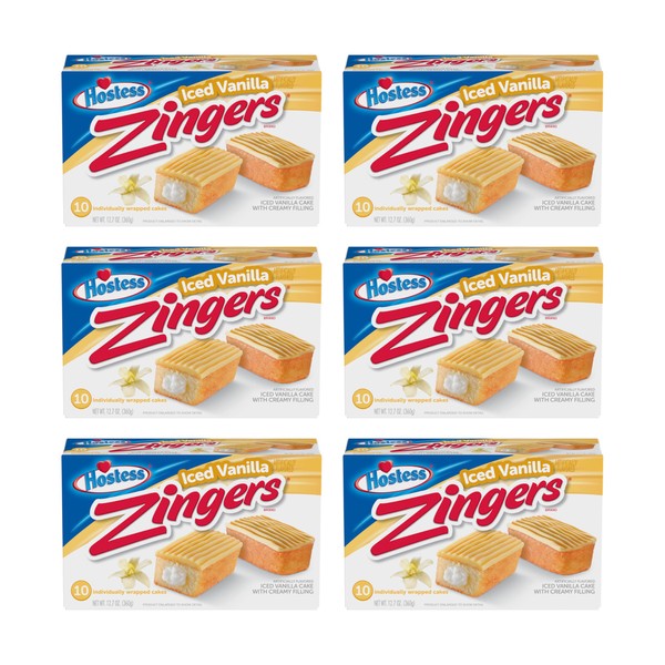 Hostess Zingers, Iced Vanilla, 10 Count (Pack of 6)